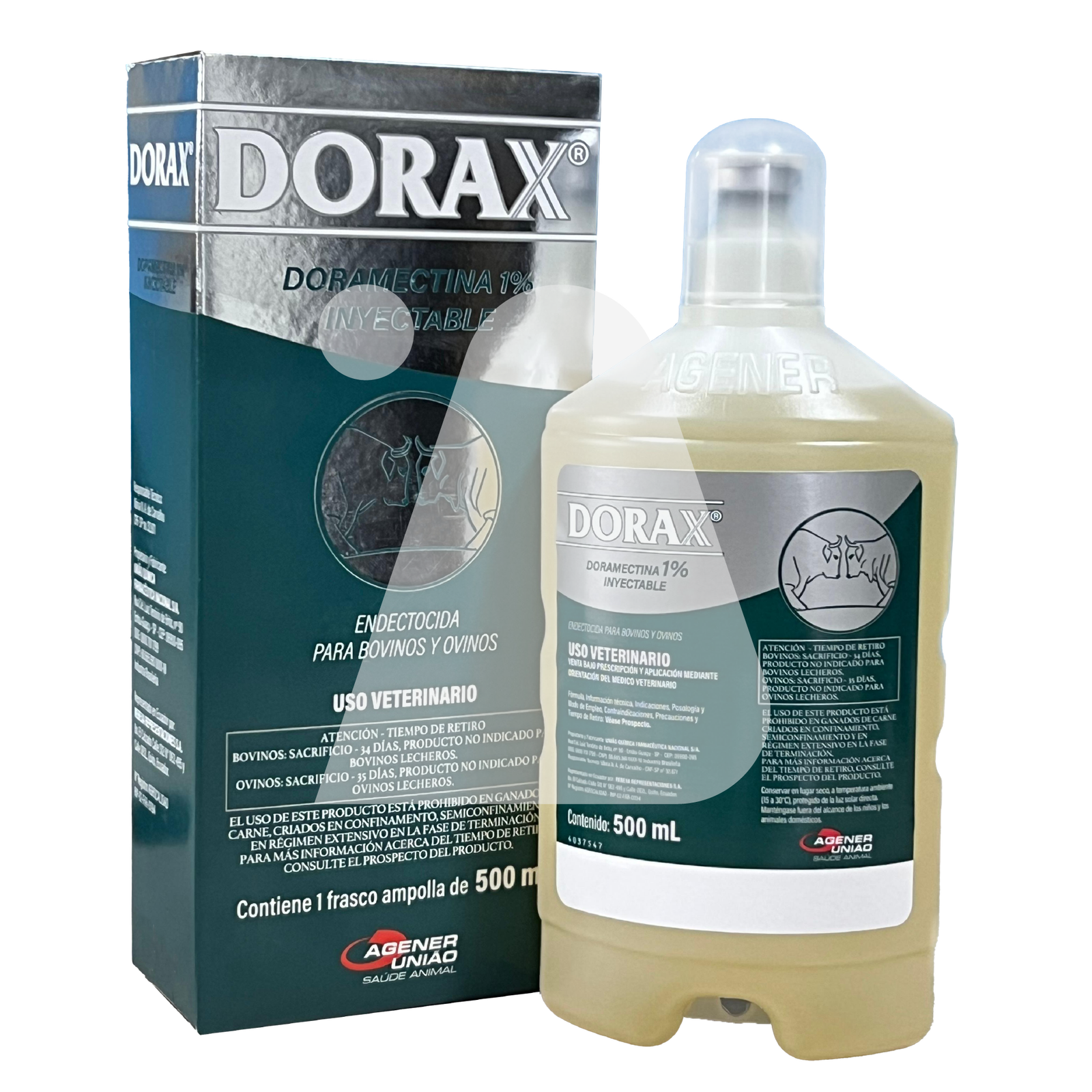 DORAX 1% controla nematodos gastrointestinales y pulmonares en bovinos y ovinos, además de ectoparásitos como moscas, piojos, ácaros y garrapatas.