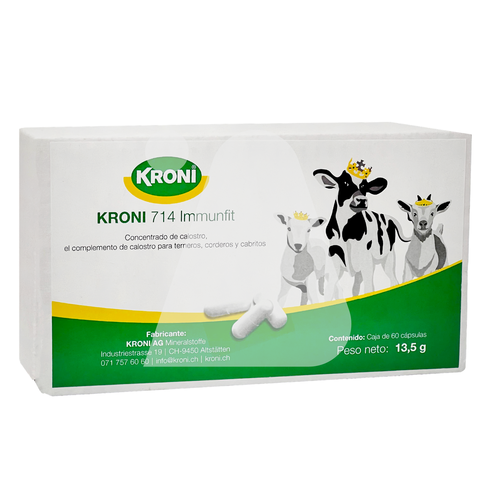 Fórmula en cápsulas de calostro concentrado de alta calidad, diseñada para proteger a terneros, corderos, cabritos y lechones en sus primeras horas de vida. Aporta inmunoglobulinas esenciales para reforzar el sistema inmunológico y mejorar la inmunidad pasiva.